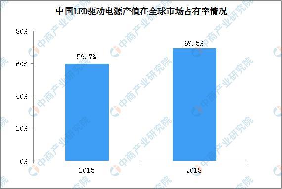作为全球LED照明产品的生产基地,中国同时也是全球LED驱动电源产业的聚集地。根据高工产研LED研究所(GGII)的统计,2015年中国LED驱动电源产值规模为172亿元,占全球LED驱动电源产值规模288亿元的59.7%;2018年中国LED驱动电源产值规模为280亿元,占全球LED驱动电源产值规模403亿元的69.5%,2015-2018年期间中国LED驱动电源产值在全球市场占有率提升了将近9.8个百分点。